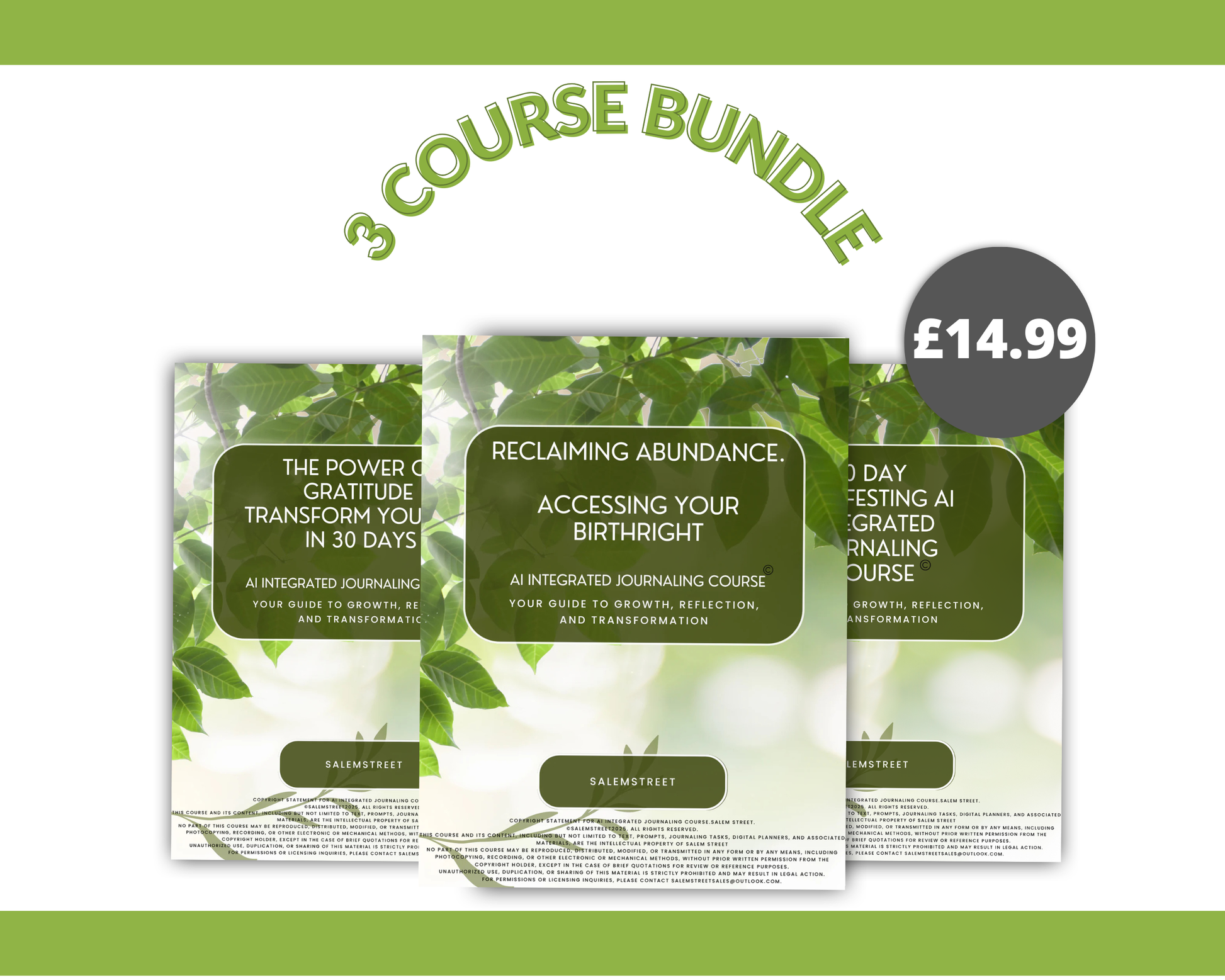 This AI-Integrated Journaling Bundle is a 3-course experience designed to help you clear energetic blocks, reset your beliefs, and open yourself to receiving more — more joy, more ease, more wealth, more life.
